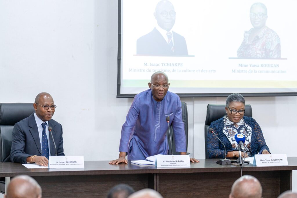 Sous la présidence du ministre, secrétaire général du gouvernement, M. Stanislas Bamouni Baba, la cérémonie de passation de service entre Mme Yawa Kouigan, ministre de la communication, et M. Isaac Tchiakpe, désormais ministre du tourisme, de la culture et des arts, s’est tenue le vendredi 10 octobre 2025 à Lomé.
