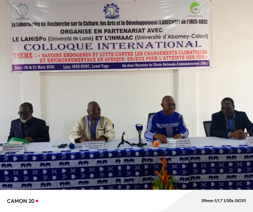 Lomé accueille depuis ce lundi 30 mars 2026 un colloque international centré sur la thématique des savoirs endogènes et leur contribution à la lutte contre les changements climatiques et environnementaux en Afrique, en lien avec les Objectifs de Développement Durable (ODD). Prévue sur deux jours, cette rencontre scientifique se veut un espace de dialogue entre chercheurs, universitaires et praticiens autour des réponses africaines aux défis environnementaux contemporains.