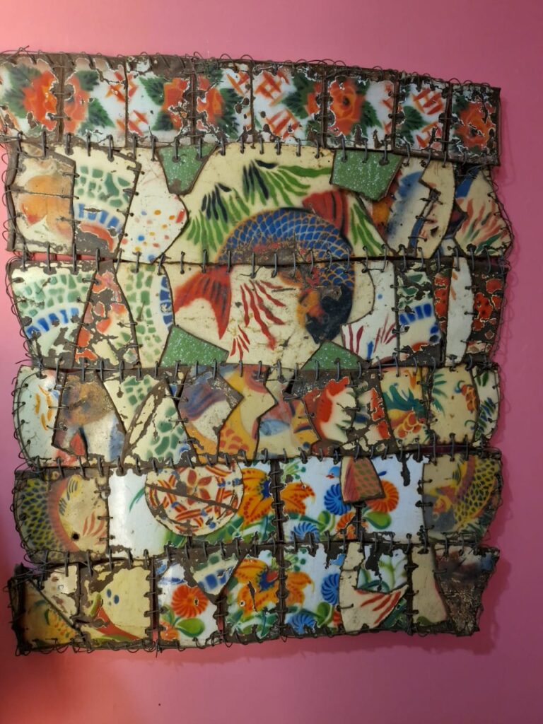 Dans son univers, les bassines émaillées, les métaux cabossés et les fragments de bois usagés deviennent des patients silencieux. L’artiste les recueille, les examine, les ausculte du regard avant de les conduire à son « bloc opératoire ». Là, muni de robustes fils de fer, il suture les plaies du monde. Chaque couture est précise, réfléchie, assumée. Pour lui, le hasard n’existe pas ; chaque entaille, chaque cicatrice, chaque tension du matériau répond à une nécessité.